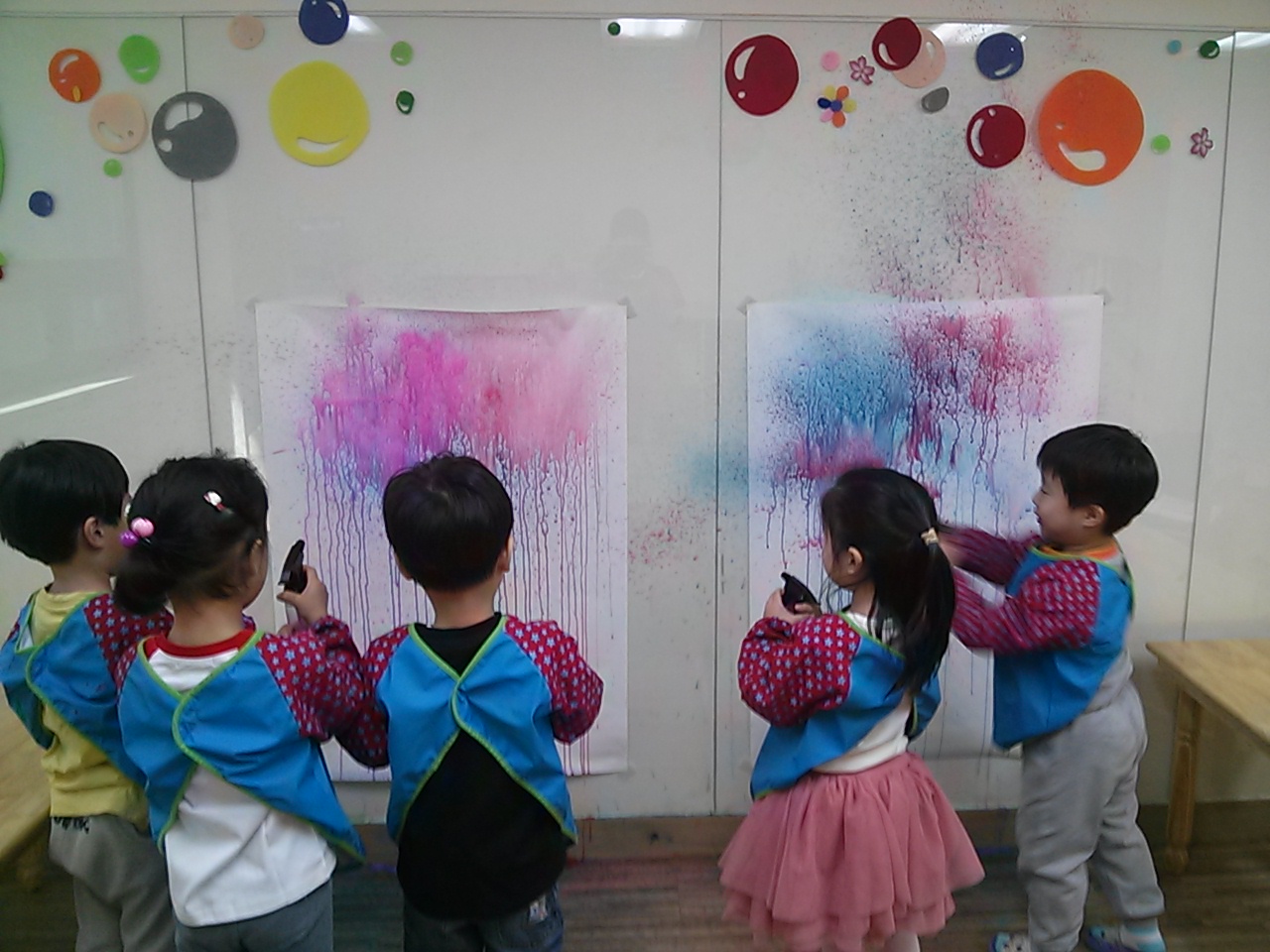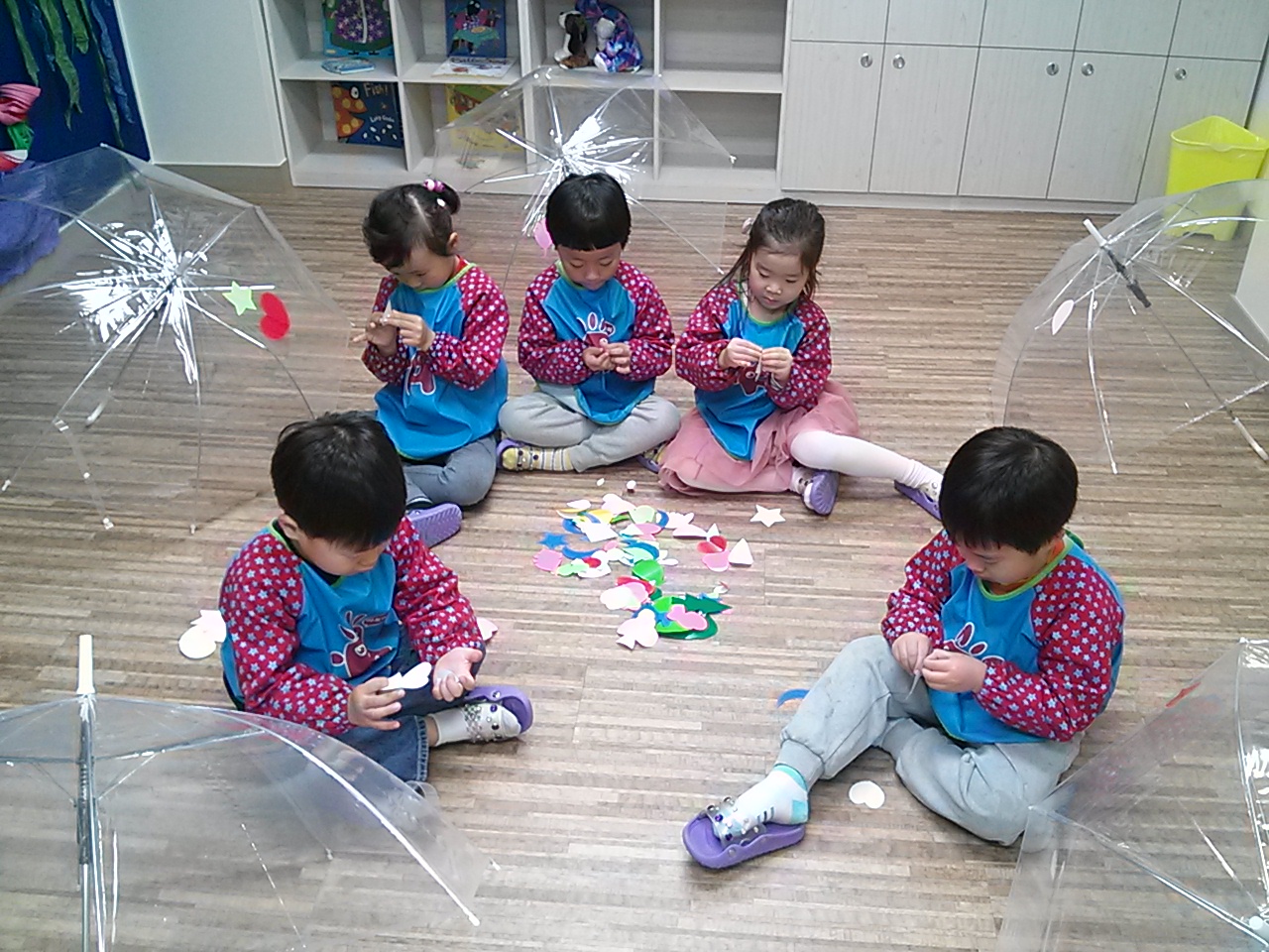 This unit aims for children to express rain drops using water colour paints and to learn the science knowledge how snails carry spiral house on their back. Children can feel the coloured water and experience the movement of the water in the bowl and using their hands with a sponge. Children can experience the science concept ‘gravity’ behind the scene observing how the water only drops towards the ground. Depicting rainy day helps children recall their prior experience which stimulates their schema. The end product is used to facilitate AR 3D app with the children to learn chants and appreciate their art work.
