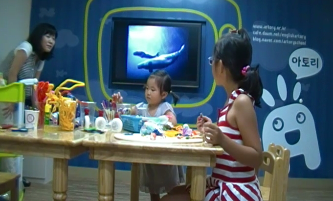The first series of ‘Artory’ AR 3D Convergence Education textbook contains four units including My Peacock, Snail in the Rain, Sea World and Fish Bowl. Each unit provides theme related performance activity fostering children’s spatial awareness and various of development. These units provide STEAM (science, technology, engineering, art, mathematics) learning during the lesson through play experience. Learning through play enables children to obtain knowledge with enjoyment manipulating the AR 3D App during the lesson. The lesson chants for each unit are topically related consolidating keywords and key sentence of the lesson.