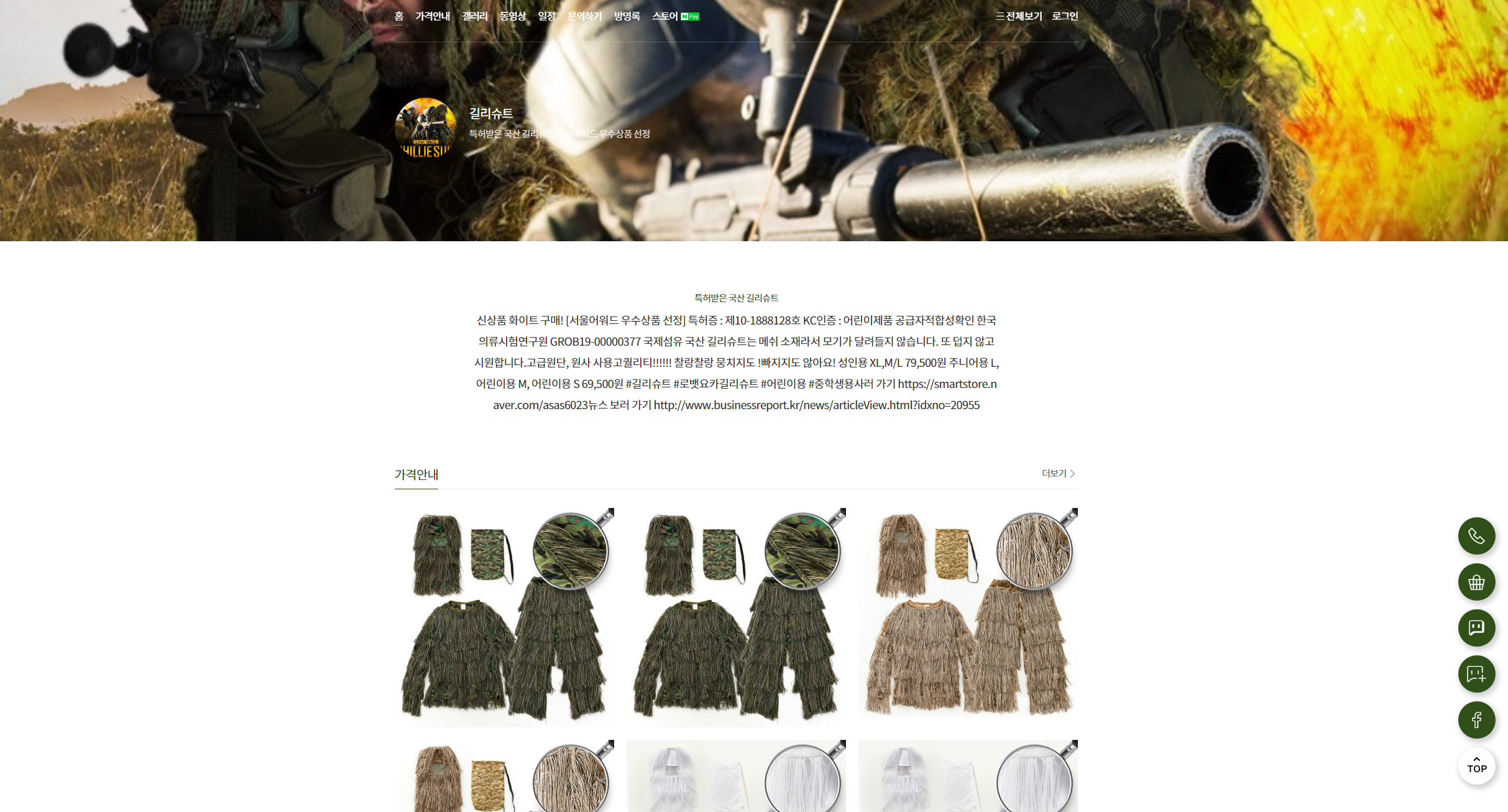 | Description | Gilie suit. A camouflage suit that covers patches or surrounding natural objects to assimilate into the surrounding environment. It is also called a sniper's camouflage suit. It is also a necessary tool for what we commonly consider "low-water" except for designated shooters and police snipers. The large camouflage membrane attached to the vehicle is called the MCS. While the pronunciation of suit in the English language is shifting to "suit," the title has been set as "gilly suit" in respect of the fact that the Korean foreign language writing regulation still stipulates reading it as "suit," and the title is unified within the x-document as well. See the suit x-documentation for pronunciation. Patterns vary according to natural environment and are unexpectedly familiar as they have been introduced to various media such as movies and games. Due to its excellent cover-up effects, it is very difficult to identify them with the eyes in forests and jungles, and even thermal imaging equipment is not clear. Because the camouflage net itself has a low thermal conductivity and x-layers, the heat on the outside is very small or weak, so the thermal equipment is said to be similar to the movement of the heat-heated wood, but there are naturally differences in type and material, and most of all, the heat does not dissipate itself, so it is extremely hot when worn So I carry them around in my bag or separate storage compartment. Most people wear it when they reach the area of operation. As described above, the interior is simply hell in the summer because several fabric x-layers, which still have a low heat conductivity, cover the entire body. It is especially painful to snipers who have to cover up hours, a long one or two weeks,[2], but if a suit of clothing can save their lives, nothing is as important as that. However, if it's still that hot, it's inevitable that there will be a lot more fatigue than usual, resulting in long-term activity. So for now, the body is divided into fully covered Gillie suits and Gillie suits that cover only part of the body, with the latter often operating with camouflage suits, mostly worn by Commonwealth snipers. Around World War II and Vietnam, there is a story that people who are color-blind used a man to find hidden snipers in a Gilly suit. Color blindness is less likely to be felt than ordinary people, but when it comes to colors that can be felt, similar colors are better distinguished than ordinary people. However, most of the menstruation that results from concealing like this is said to be resolved in place (...). In the old days, most of them were made by themselves, but these days, there are quite a few ready-made items in use. In addition to gillie suits like drooping moss, which often float on images, there are many cases where snipers are arbitrarily added grass snails and jumbled together to improve their camouflage capabilities. Even if you don't do that, dust can get entangled in the suit itself, so if you just walk around, you'll find leaves or hay on your own. It was first introduced in World War I, when Scottish hunting groundskeepers camouflaged with colorful trapezoid jars attached to their clothes and covered their heads with rags, showing excellent sniper skills. NO LUMPING AND NO SHEDDING. PATENTED PRODUCT: Manufacturing process and design are patented under patent number 10-1888128. Made in Korea. DOES NOT SHED: Unlike cheap Chinese made product, this suit does not shed its fabric, even if the strings are pulled or tugged with force PERFECT GIFT: Perfect gift for your spouse in the army. |